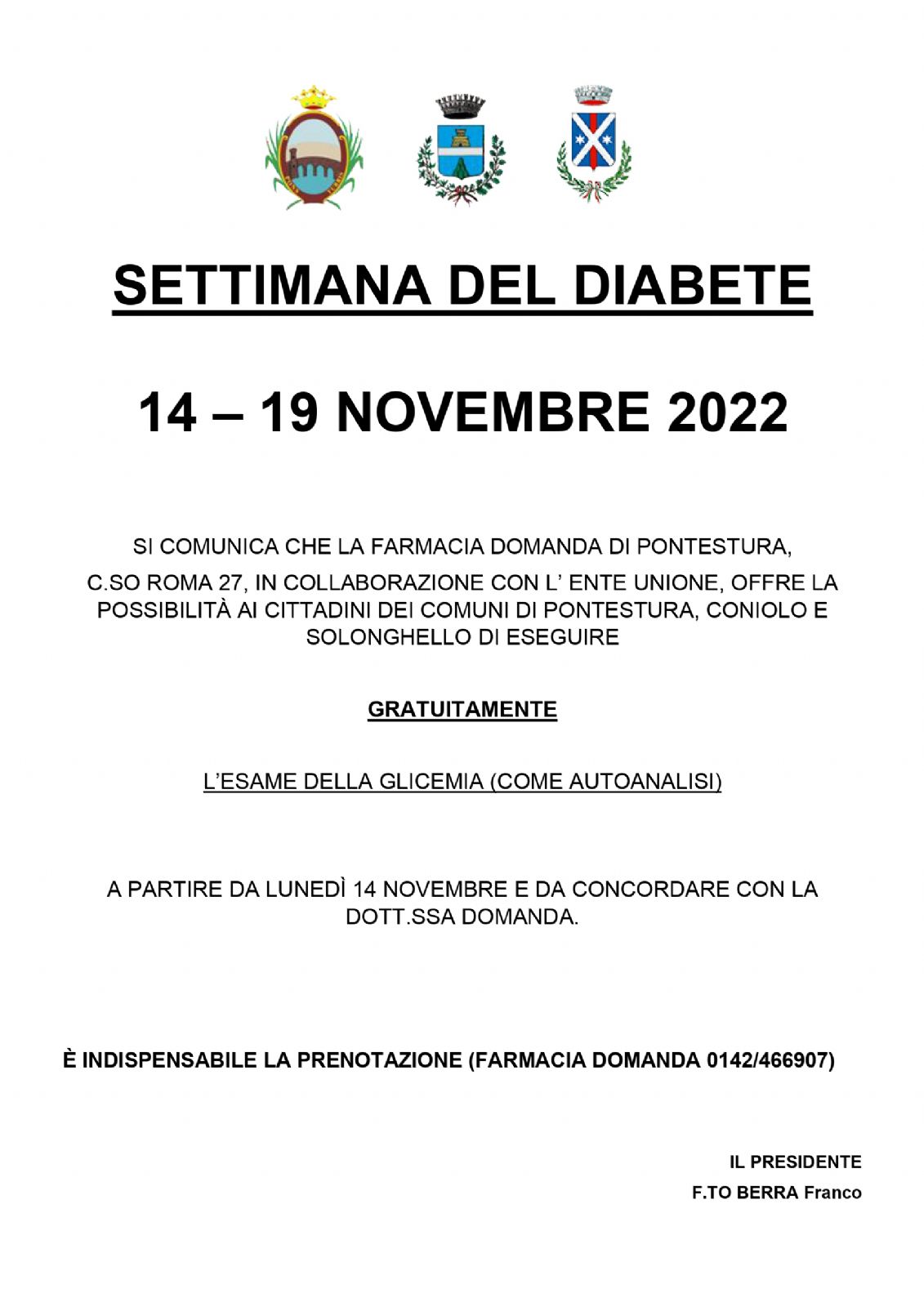 SETTIMANA DEL DIABETE 14-19 NOVEMBRE 2022