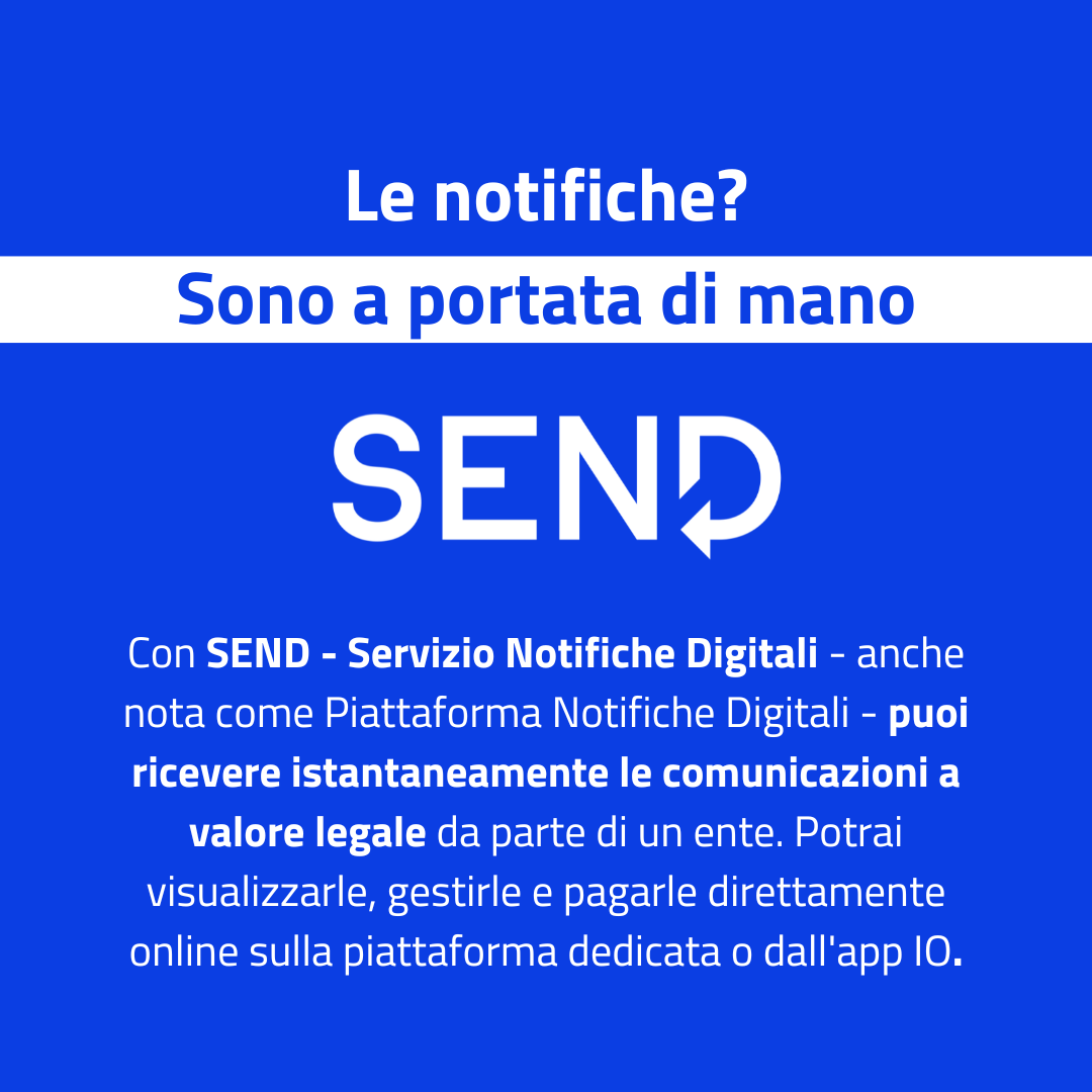Il Servizio Notifiche Digitali semplifica la gestione delle comunicazioni a valore legale per enti, cittadini e imprese. Infatti, grazie a SEND (anche nota come Piattaforma Notifiche Digitali di cui all’art. 26 del decreto-legge 76/2020 s.m.i.) si possono ricevere istantaneamente le comunicazioni a valore legale da parte di un ente, visualizzarle, gestirle e pagarle direttamente online sulla piattaforma o dall’app IO.