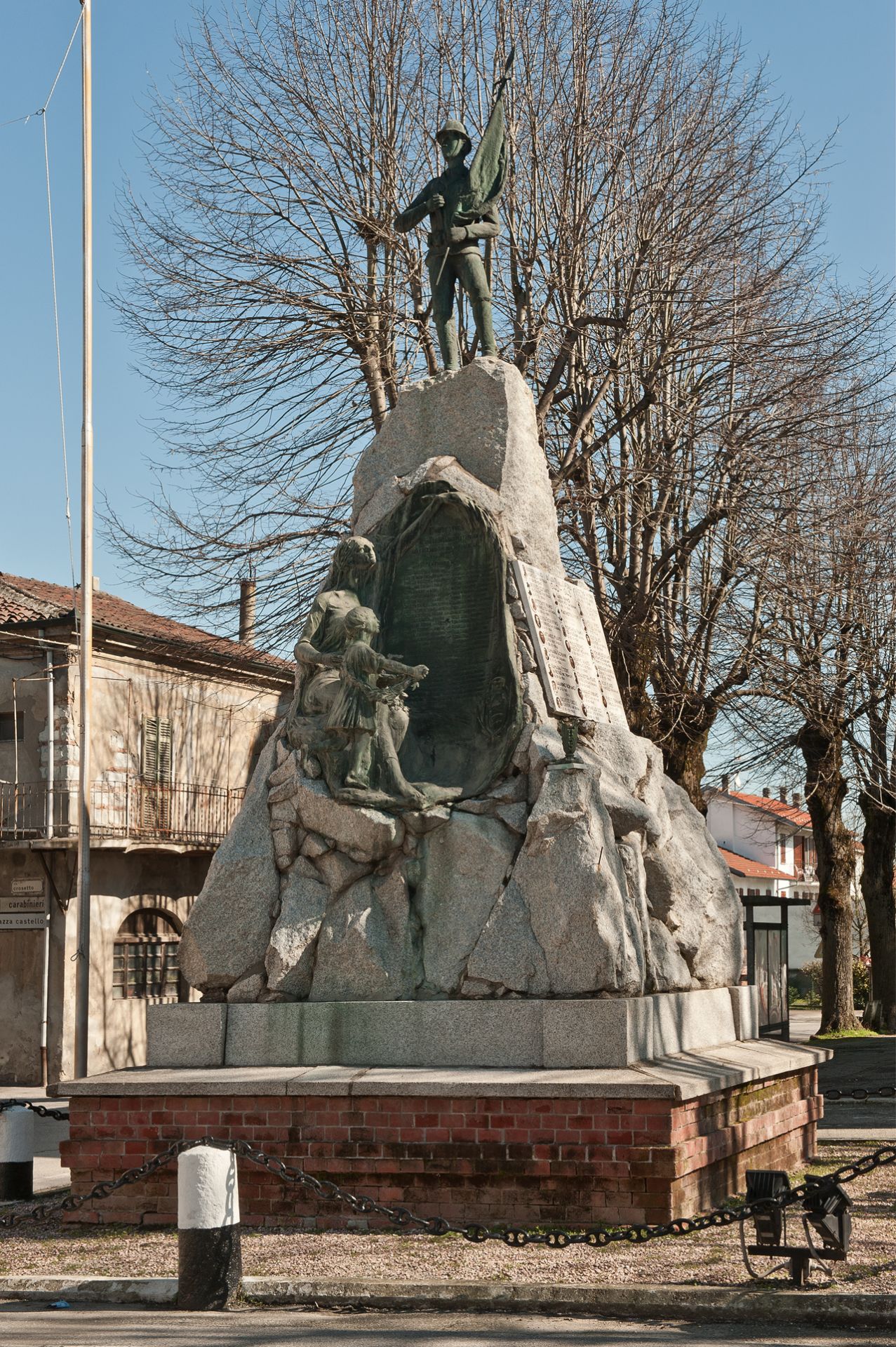 I lavori di adattamento del piazzale dell'antistante seicentesca chiesa della Madonna delle Grazie erano stati eseguiti dai fratelli Francesco e Giovanni Serrafero per ospitare il nuovo Monumento realizzato con blocchi di granito a forma di vetta di montagna con in cima la statua di un soldato con la bandiera in mano.